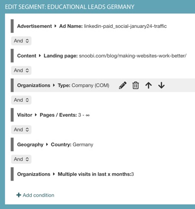 Sinun on tunnistettava kaikista verkkosivustosi kävijöistä ne organisaatiot, joita haluat tarkastella yksityiskohtaisesti.
